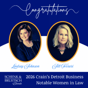 Lindsey Johnson and Jill Ferrari have been named 2026 Crain's Detroit Business Notable Women in Law — and the recognition reflects more than individual achievement. It highlights the intentional work behind building the ELEVATE Practice Group to serve female founders and female executives across Michigan and beyond.